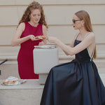 A timeless gown designed with a structured bodice and a flowing A-line skirt. The delicate pearl detailing along the open back adds a refined touch, balancing elegance with modern sophistication. Perfect for formal events and special occasions.